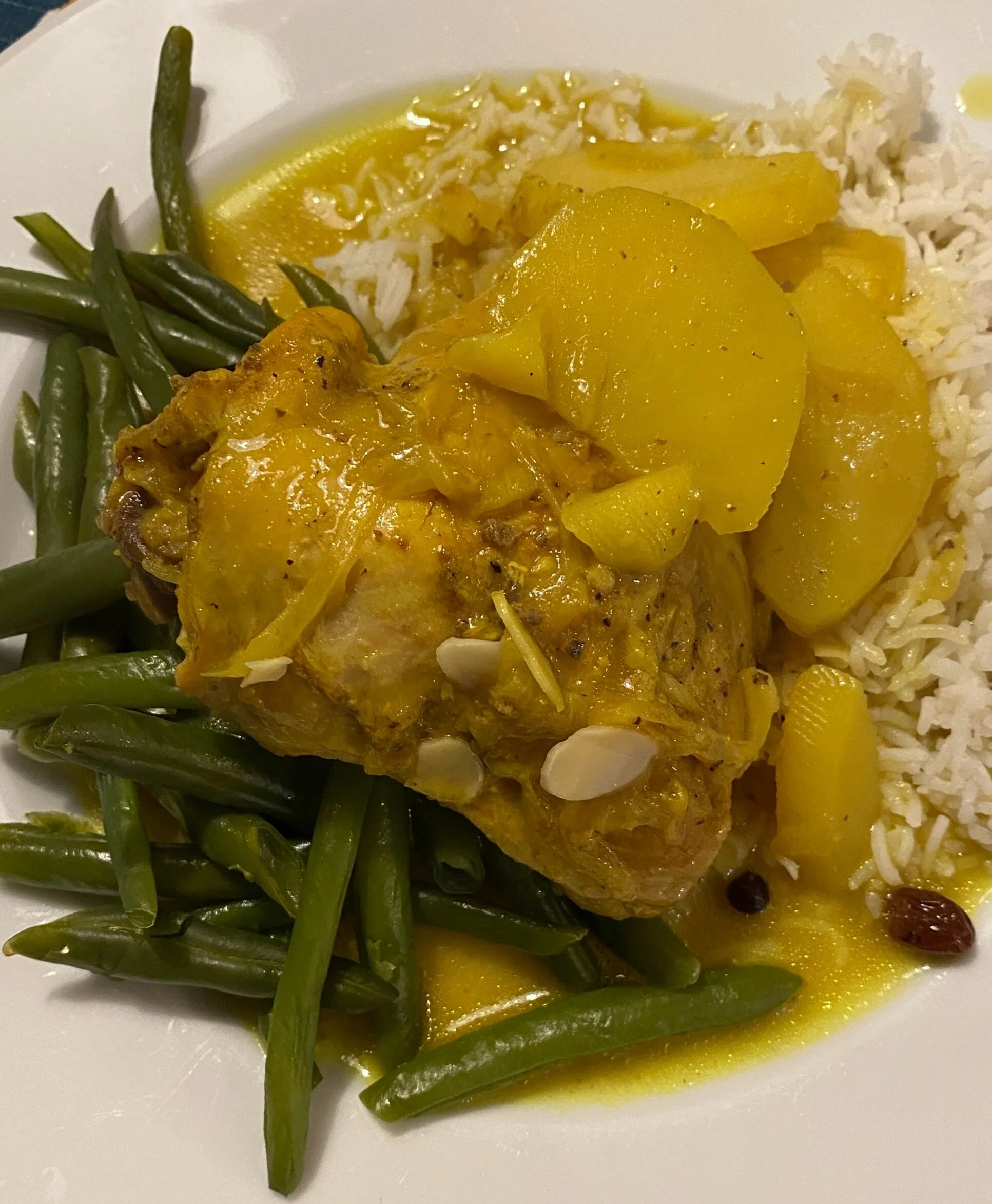I discovered this simple and delicious recipe many years ago in Claudia Roden’s beautiful Book of Jewish Cooking. Its origins are in the Indian Jewish community of Bene Israel and it has become a go-to comfort food for me. As Claudia says: “there are sweet and delicate flavours in the voluptuous sauce”. It could not be put better. This is my slight adaptation of her recipe.