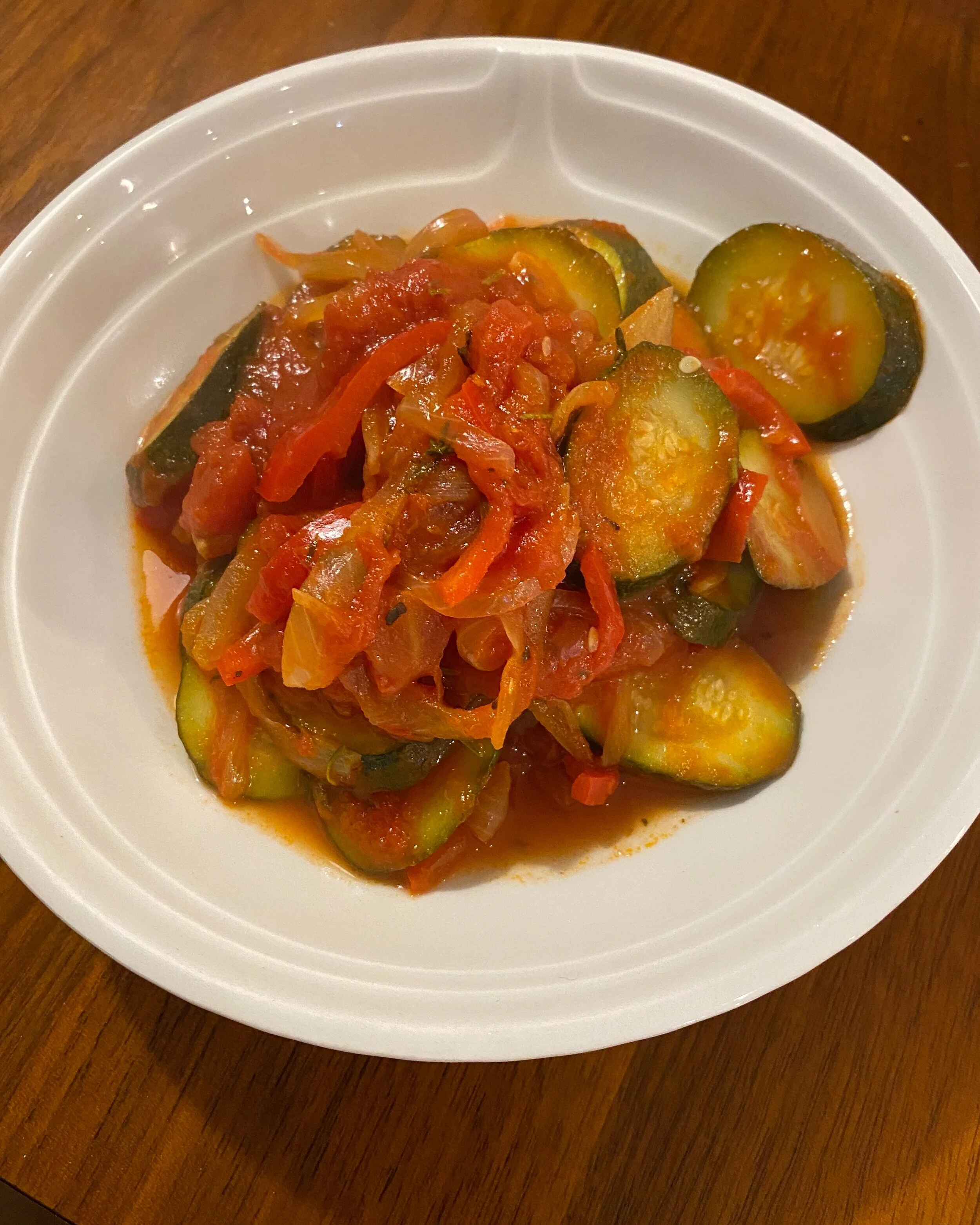 A word of caution to those suffering from inflammation, and particularly arthritis, this dish is full of nightshade vegetables, which for some people can be inflammatory and indigestible. If you suffer from autoimmune issues, it is probably best to avoid aubergine/eggplant, peppers and tomatoes.